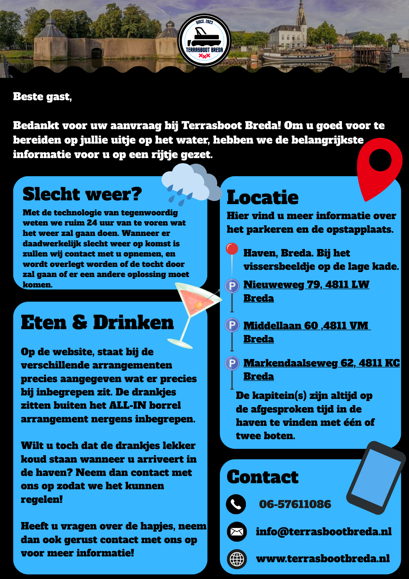 Vraag hier vrijblijvend uw tocht op de terrasboot aan!